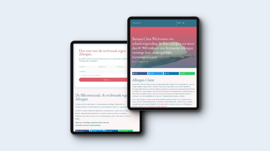 In samenwerking met de klant hebben we de wensen voor de uitstraling geïnventariseerd. Ook is vastgesteld welke content overgezet zou worden naar de nieuwe website. Voor content die niet werd meegenomen, zijn redirects naar relevante pagina’s ingesteld. De site is gebruiksvriendelijk en biedt duidelijke informatie over de juridische strijd en het belang van geïnformeerde toestemming.